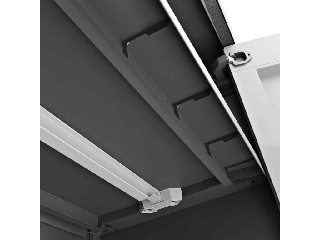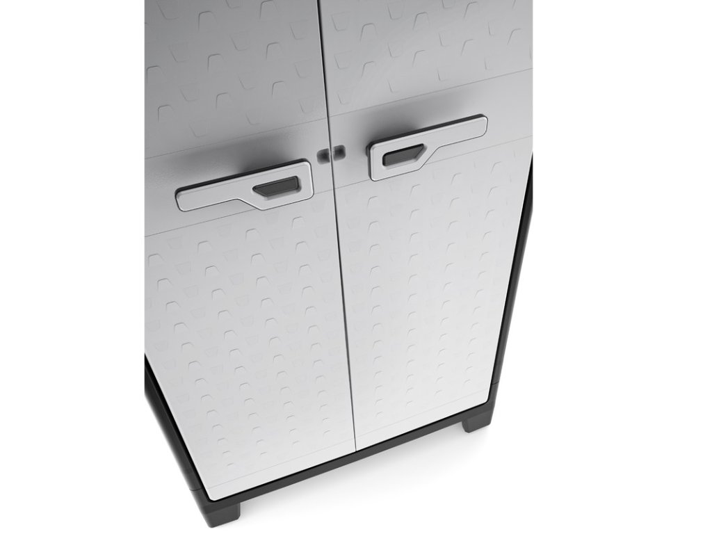 TITAN MultiSpace 9761 je bytelná a designově elegantní plastová skříň určená pro použití na zahradě, v garáži nebo dílně. Díky konstrukci z odolného plastu je skříň odolná proti korozi i vlhkosti. Nabízí řešení pro přehledné uskladnění zahradního náčiní, hadic, dek nebo jiného vybavení. Tato skříň nemá UV ochranu. Díky voděodolnosti dle certifikace IPX3 zvládne skříň bez problémů i venkovní podmínky bez nutnosti zastřešení.