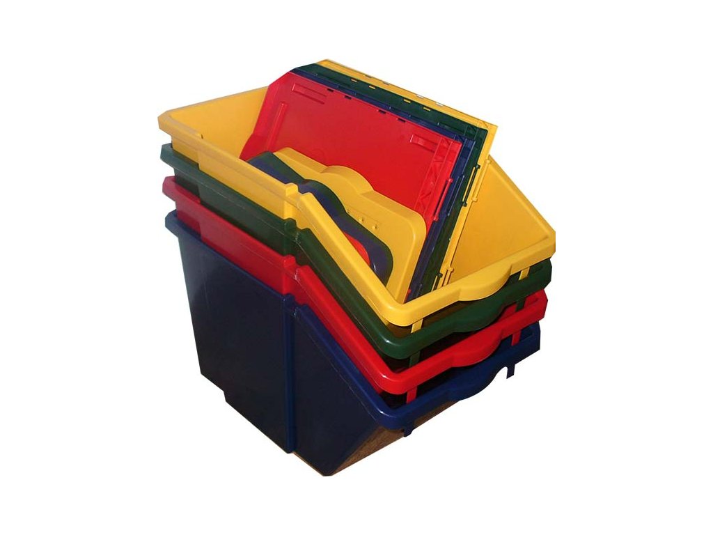 Oblíbená nádoba na tříděný odpad vhodná do kanceláří, na úřady, do škol i nemocnic. Barevné provedení umožňuje snadnou orientaci. Nádoba je stohovatelná, víko je odklápěcí.