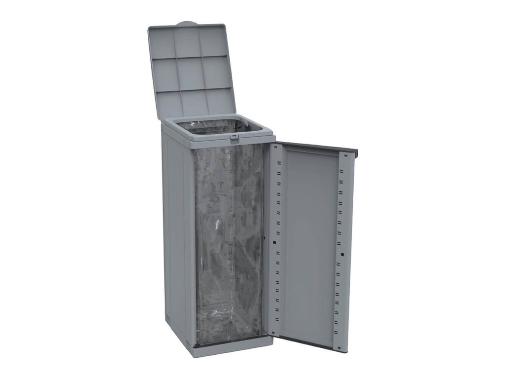 Elegantní a praktická plastová skříň vhodná pro vnitřní i kryté vnější použití (odolná dešti). Kombinuje atraktivní design s funkčností pro efektivní třídění odpadu.