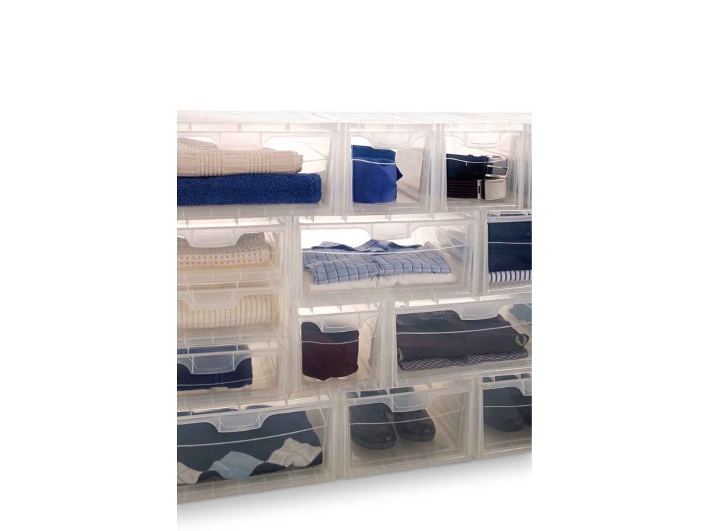 Spider box 4 je zploštělá varianta úložného boxu z řady Spider, která připomíná klasický nábytkový šuplík. Díky svému čirému provedení a praktické konstrukci je ideální pro ukládání menších předmětů, textilu, osušek nebo nářadí.