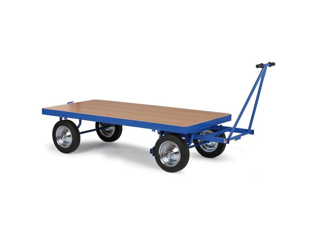 Ruční plošinové vozíky jsou výborným pomocníkem všude tam, kde je potřeba převážet materiál či zboží velkých rozměrů a vysokých nosností na kratší vzdálenosti. Stavebnicový systém umožňuje stavbu variant dle přání zákazníka pouhým zasunutím požadované nástavby a zajištění šroubem. Speciální uložení bočnic zajišťuje vždy výbornou pevnost a stabilitu vozů.Konstrukce plošinového vozu