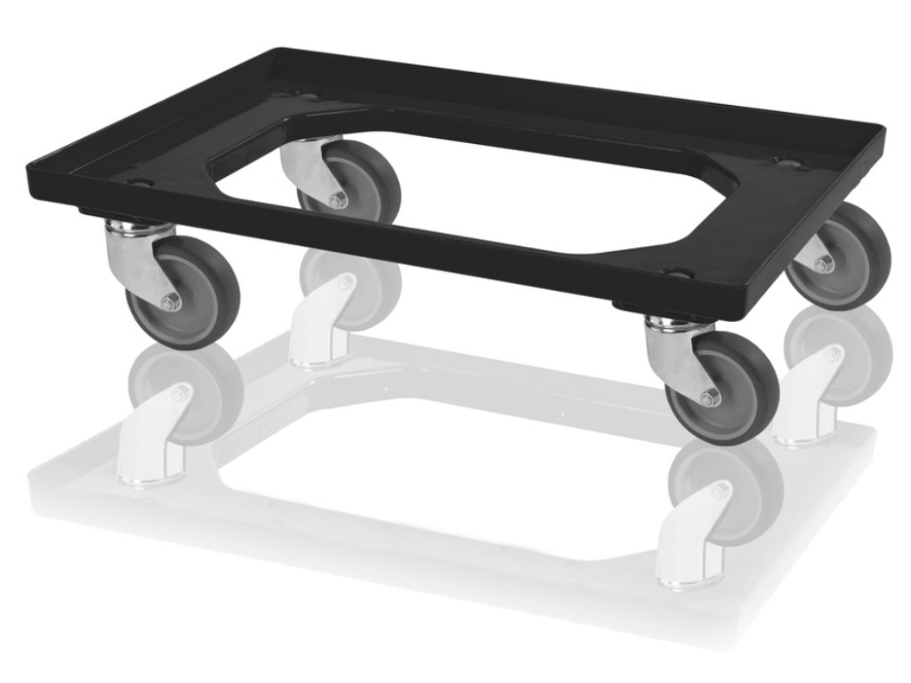 Podvozek pro přepravky 2 otočná + 2 pevná kola - černý