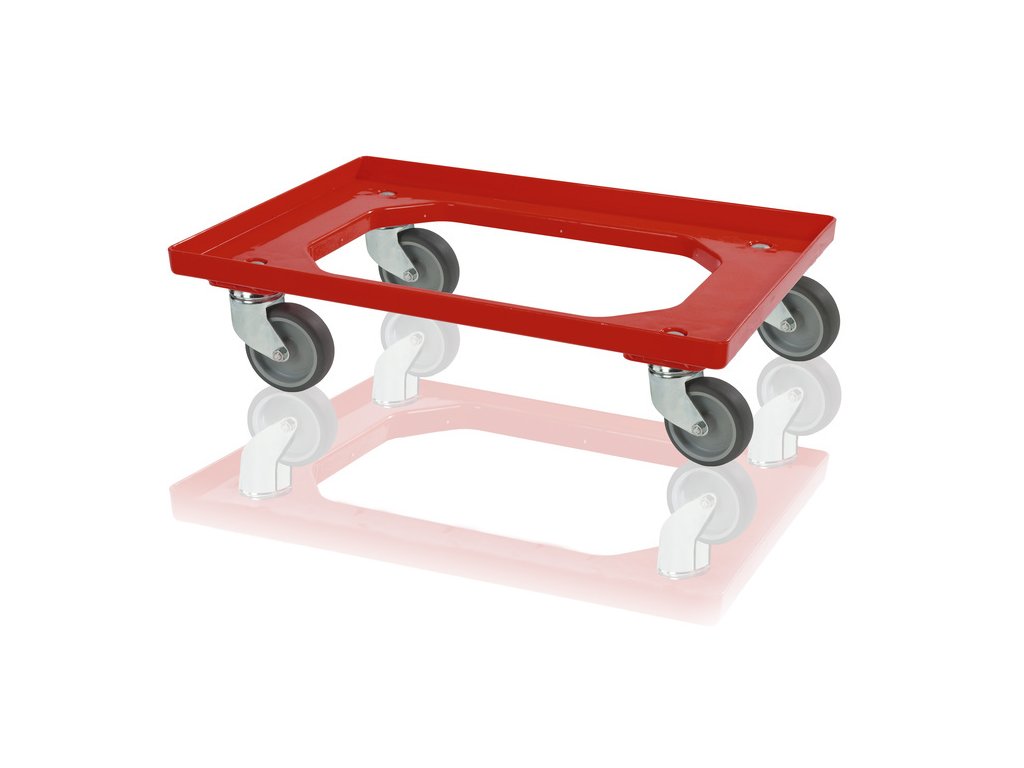 Podvozek pro přepravky 2 otočná + 2 pevná kola - červený