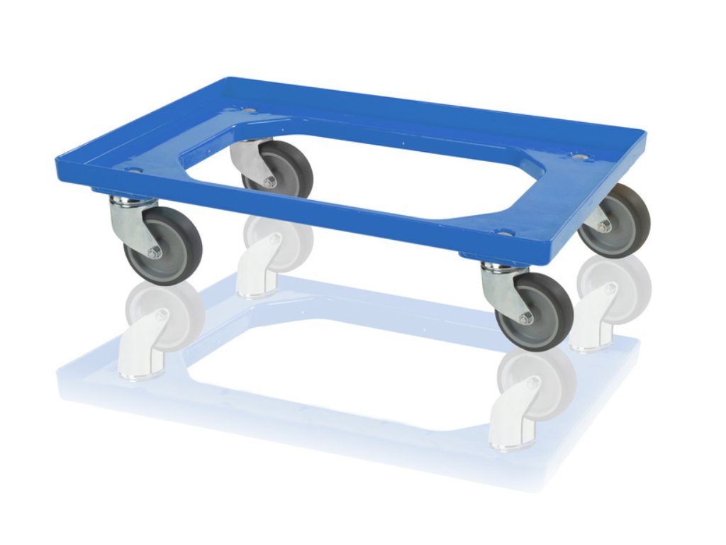 Podvozek pro přepravky 2 otočná + 2 pevná kola - modrý