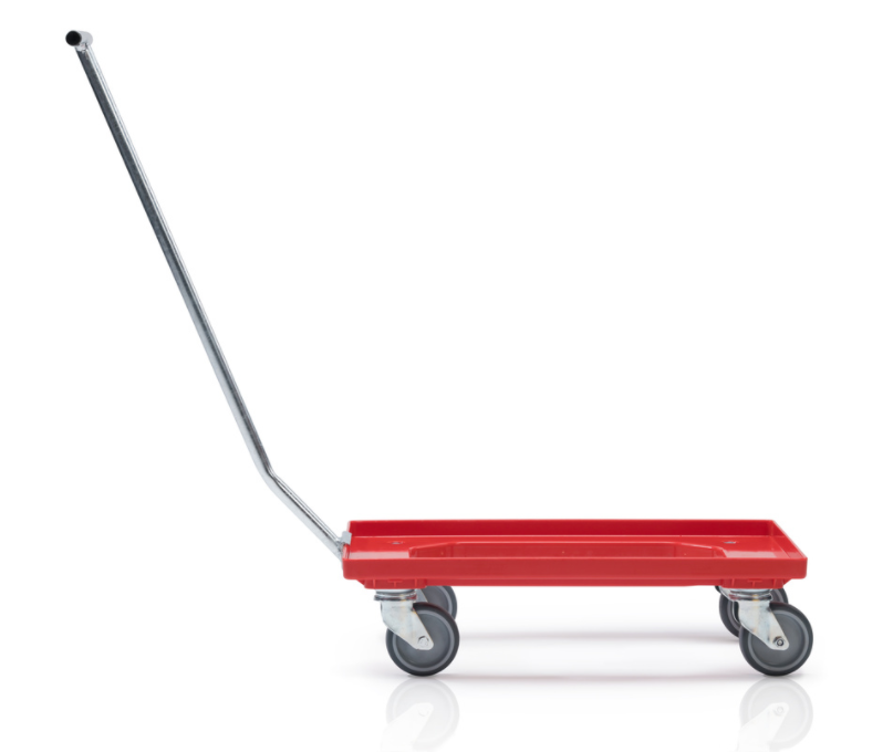 Uchycení tažné tyče k podvozku je bez pomocí šroubů. Upevnění tyče je pouze za rám podvozku, tzn. tyč se vsune pod podvozek v úhlu cca 25° vůči podlaze, poté se zvedne do pohotovostní výšky, ve které se manipuluje s vozíkem a již je zafixován. Velmi jednoduchý a efektivní způsob – možno zapojit jednou rukou.