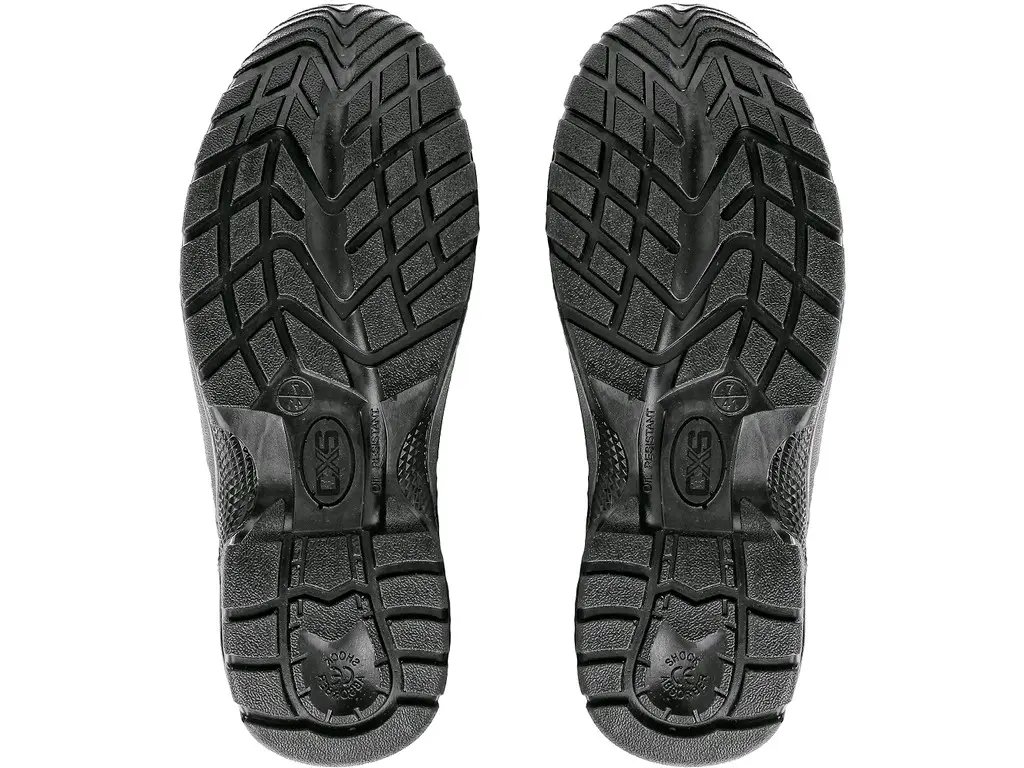 Kotníková obuv, celokožená bez ocelové špice, reflexní doplňky. Materiál: hydrofobní svršek z 1,6 - 1,8 mm hovězí štípenkové tištěné kůže, podšívka Cambrelle, podešev: PU-PU, protiskluzová, antistatická, olejivzdorná.Doplňkové parametry