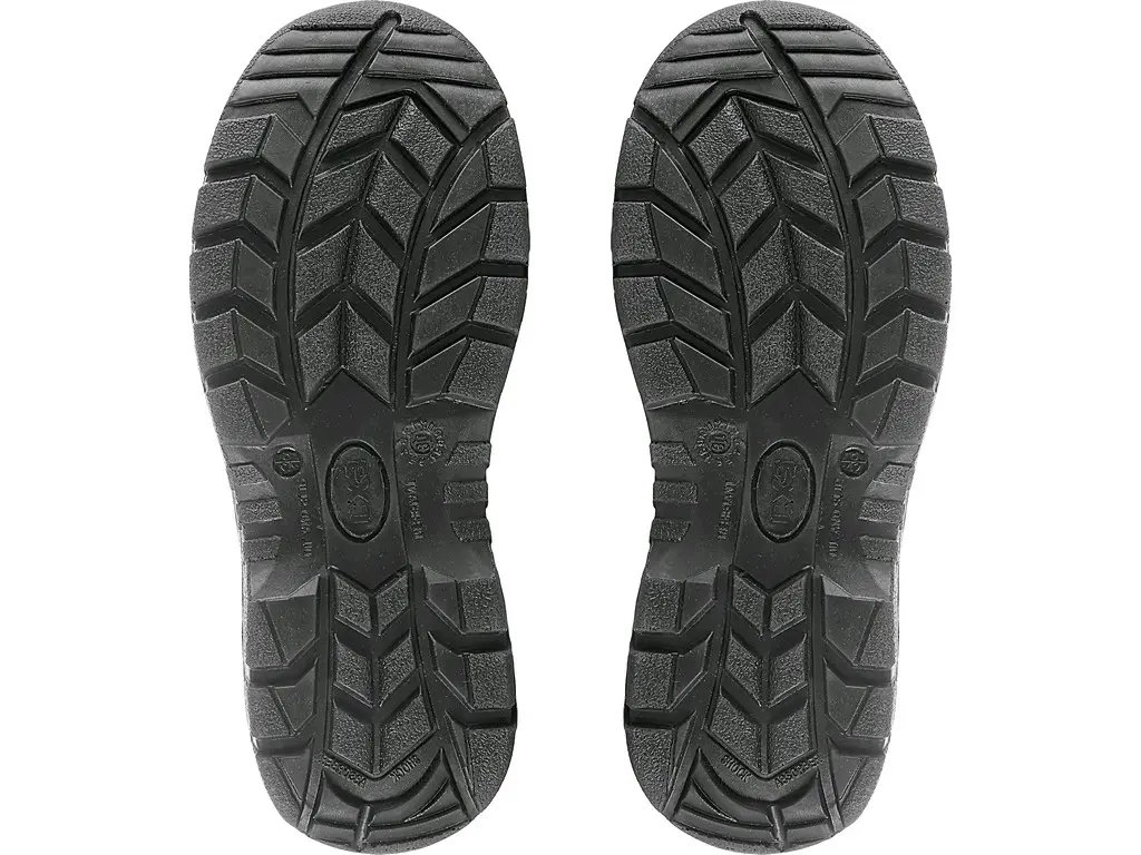 Kotníková obuv, celokožená s ocelovou špicí. Materiál: hydrofobní svršek z 1,6 - 1,8 mm hovězí štípenkové tištěné kůže, podšívka Cambrelle, podešev: PU-PU, protiskluzová, antistatická, olejivzdorná.Doplňkové parametry