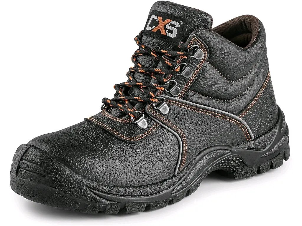 Kotníková bezpečnostní obuv, kožená, s ocelovou špicí a planžetou. Materiál: svršek z 1,8 - 1,9 mm hydrofobní lícové kůže s reflexním PVC páskem, podšívka z prodyšné oděru odolné textilie, podešev: PU-PU, olejivzdorná, antistatická, protiskluzová, odolná proti propichu.Doplňkové parametry
