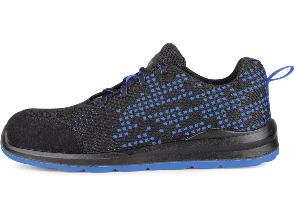 Bezpečnostní polobotka, ESD, textilní, s kompozitní špicí a planžetou Dyna-Flex®, reflexní doplňky. Materiál: svršek z odolného 1,8 - 2,0 mm polyesteru pratelného do 30 °C, přední část zesílena mikrovláknem, 3-vrstvá prodyšná textilní podšívka, podešev: PU-PU, protiskluzová, olejivzdorná, antistatická, odolná proti propichu.Doplňkové parametry