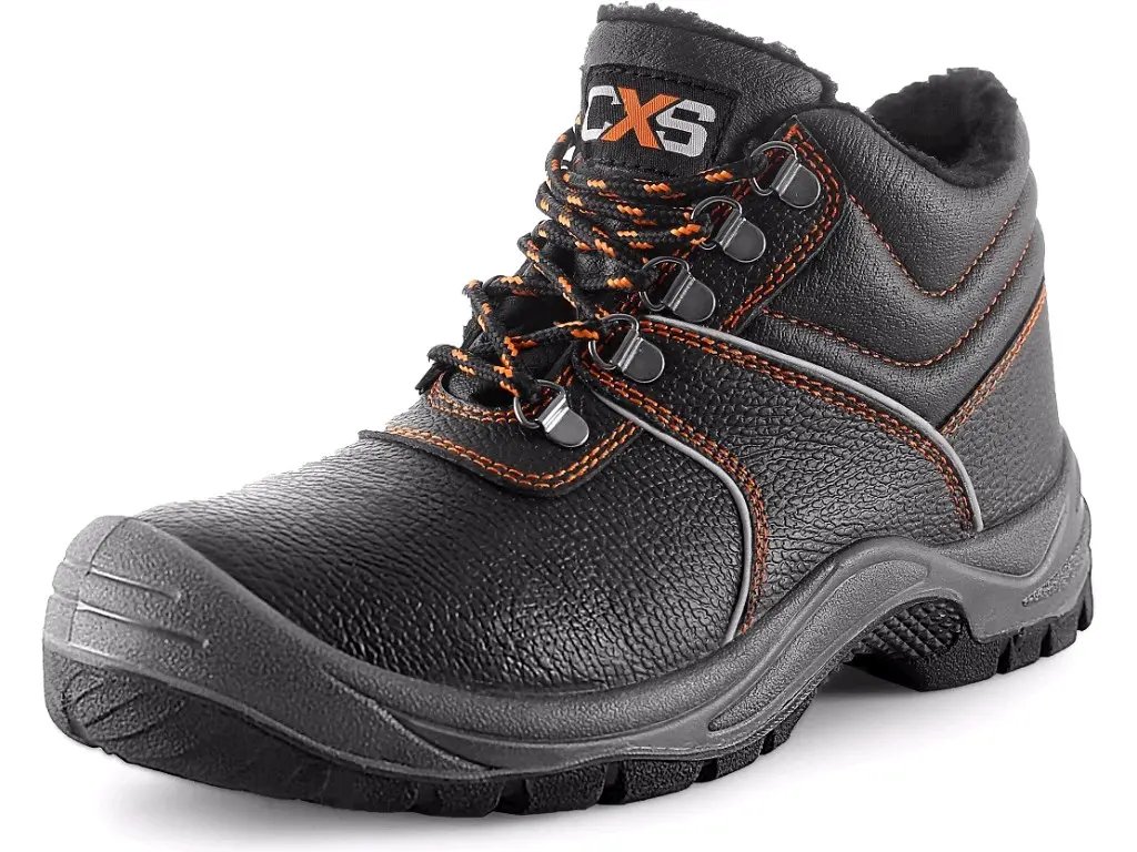 Kotníková obuv, zimní, celokožená bez ocelové špice, reflexní doplňky. Materiál: hydrofobní svršek z 1,6 - 1,8 mm hovězí štípenkové tištěné kůže, podšívka Cambrelle zateplená umělým kožíškem, podešev: PU-PU, protiskluzová, antistatická, olejivzdorná.Doplňkové parametry
