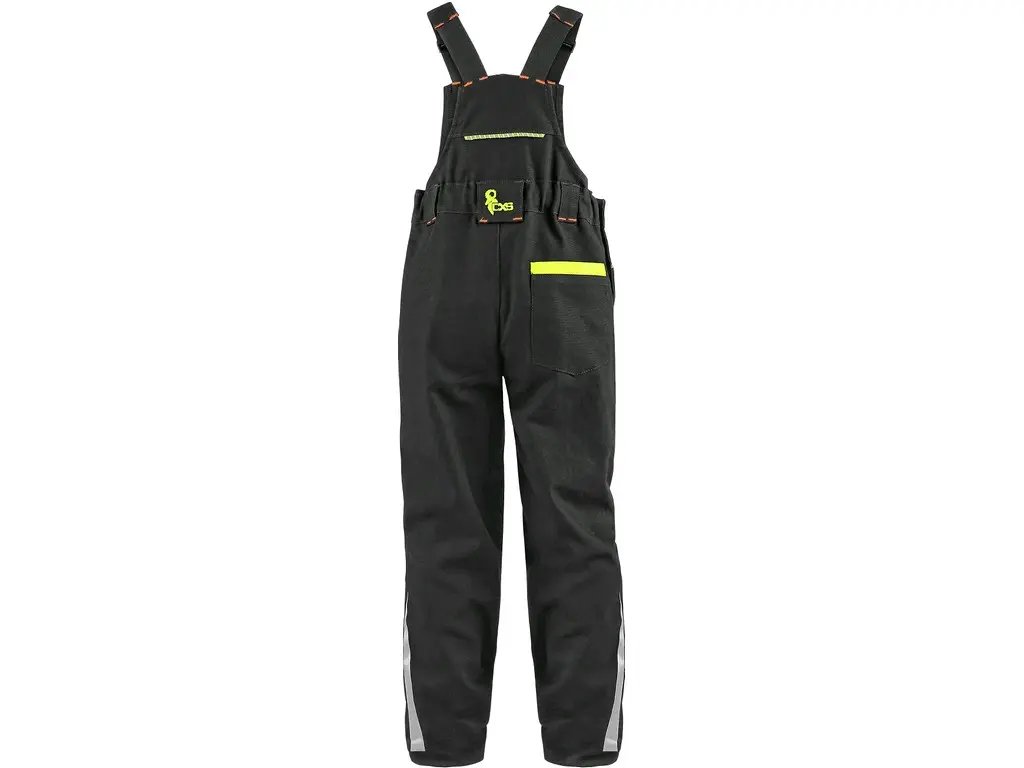 Dětské zahradníky CXS GARFIELD, černé s HV žluto/oranžovými doplňky
