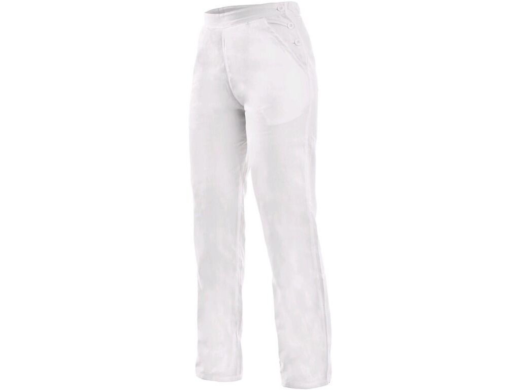 Dámské kalhoty, pevný pas, boční zapínání na knoflíky, 2 přední kapsy. Doporučené použití: soukromé ordinace, kliniky a velká zdravotnická zařízení, záchranné a zdravotní dopravní služby, lázeňská zařízení, ústavy sociální péče, lékárny, školy se zdravotnickým a gastro zaměřením.Doplňkové parametry