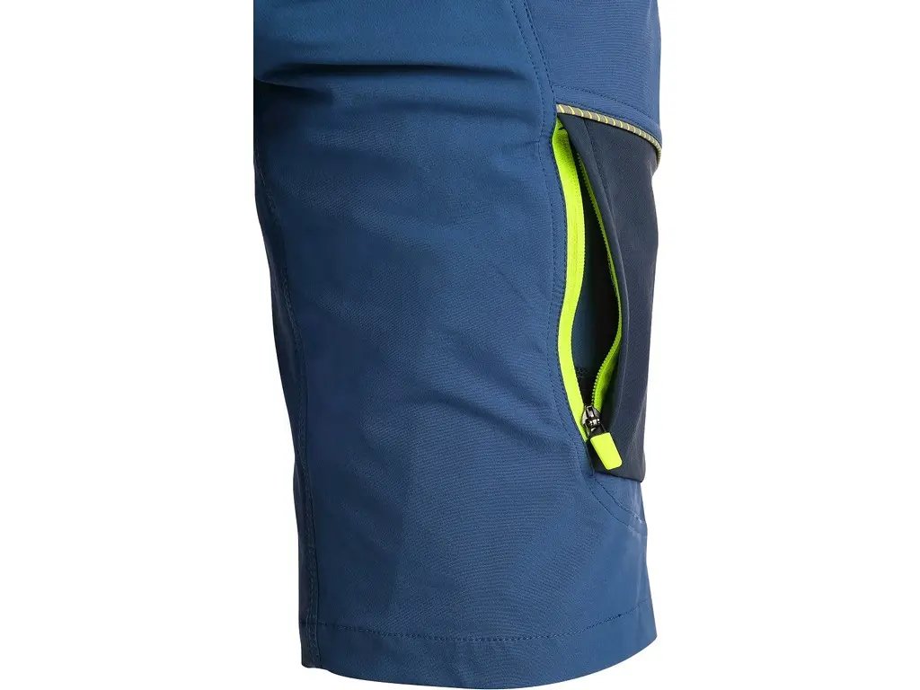 Pánské montérkové kraťasy s kontrastními barevnými a reflexními doplňky. Konstrukce 4-way stretch umožňuje roztahování materiálu ve všech čtyřech směrech a tím i snadný a volný pohyb. Vysoké procento nylonu zaručuje schopnost rychlého schnutí. Vybavení: flexibilní pas s možností upravení velikosti a poutky na opasek, 2 přední kapsy, 2 odnímatelné kapsy na nářadí vyztuženy materiálem CORDURA, kapsa na zip na stehně, multifunkční boční kapsa, 2 zadní kapsy ve spodní části vyztuženy materiálem CORDURA. Doporučené použití: letní pracovní oděv, strojírenství, stavebnictví, lehký průmysl, automobilový průmysl, logistika, skladování, spedice, autoservisy, údržba, montáže, zemědělství, zahrada, hobby a volný čas.Doplňkové parametry