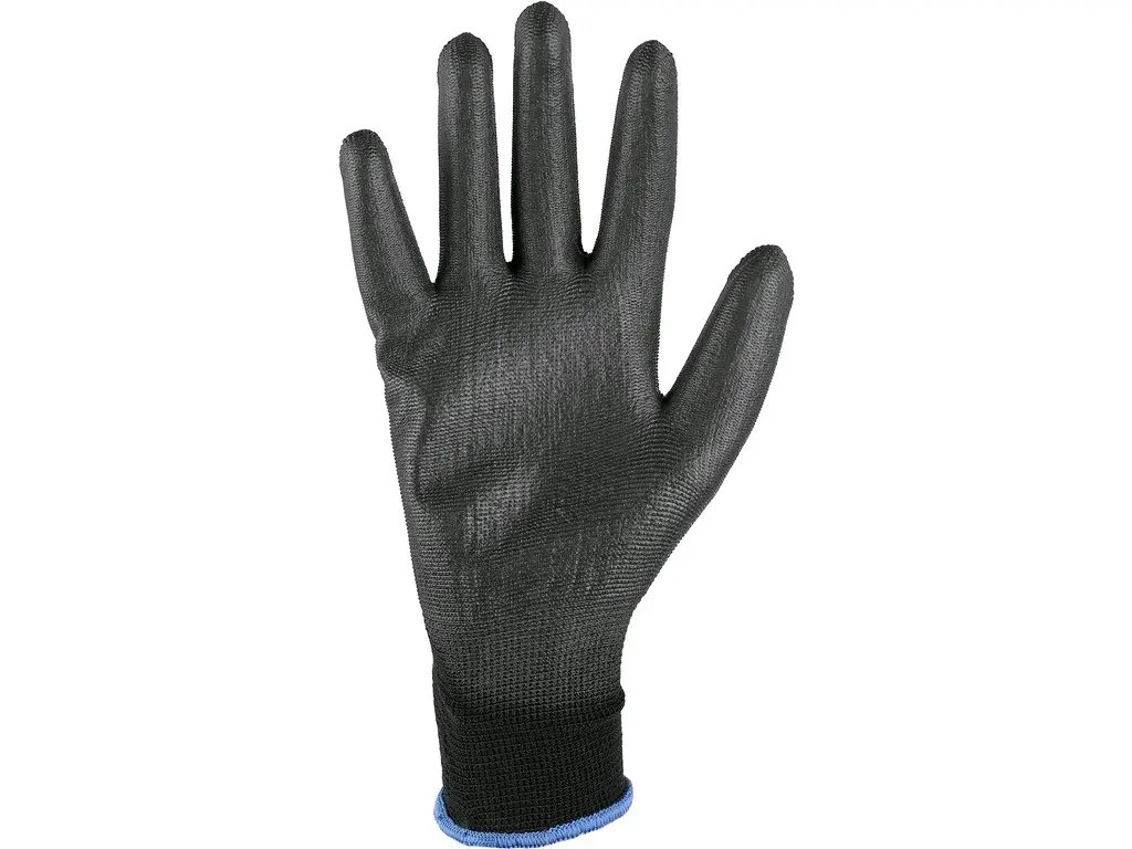 Pletené bezešvé rukavice, dlaně a prsty povrstveny polyuretanem, pružná manžeta. Doporučené aplikace: automobilovýprůmysl, elektronika, logistika, skladování, lehké montáže.