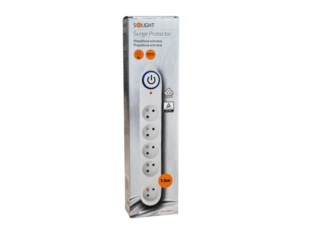 Solight přepěťová ochrana, 150J, 5 zásuvek, 1,5m, bílá