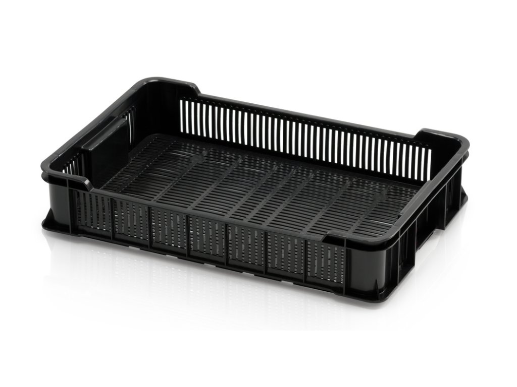 Přepravky na ovoce a zeleninu - praktický pomocník pro skladování hlavně díky své nízké hmotnosti. Perforace v bednách umožňuje přístup vzduchu k potravinám a zajišťuje tak jejich delší trvanlivost. Normované rozměry 60 x 40 cm jsou ideální pro transport manipulaci na paletách. Nabízené plastové boxy jsou vyrobeny z regranulátu nebo z vysoce jakostního polyetylenu. Odolné vůči olejům, pryskyřicím a zásadám. Barva přepravky je pouze ilustrativní.