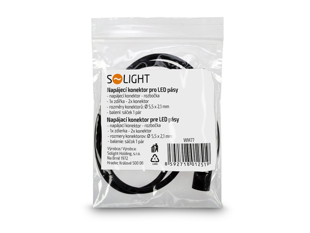 Solight napájecí konektor pro LED pásy, 5,5mm, rozbočka, 1x zdířka - 2x konektor, sáček 1 pár