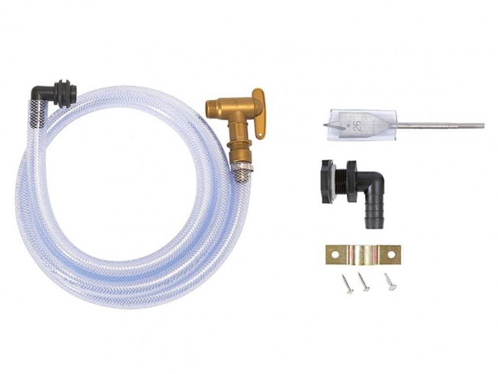 Sestava 3/4´´ s hadicí na vodu 2,1 m, vč. uzavíracího kohoutu, vrtáku a montážního příslušenství. Zajišťuje plnohodnotný odběr vody z nadzemních nádrží a zobrazuje hladinu vody.