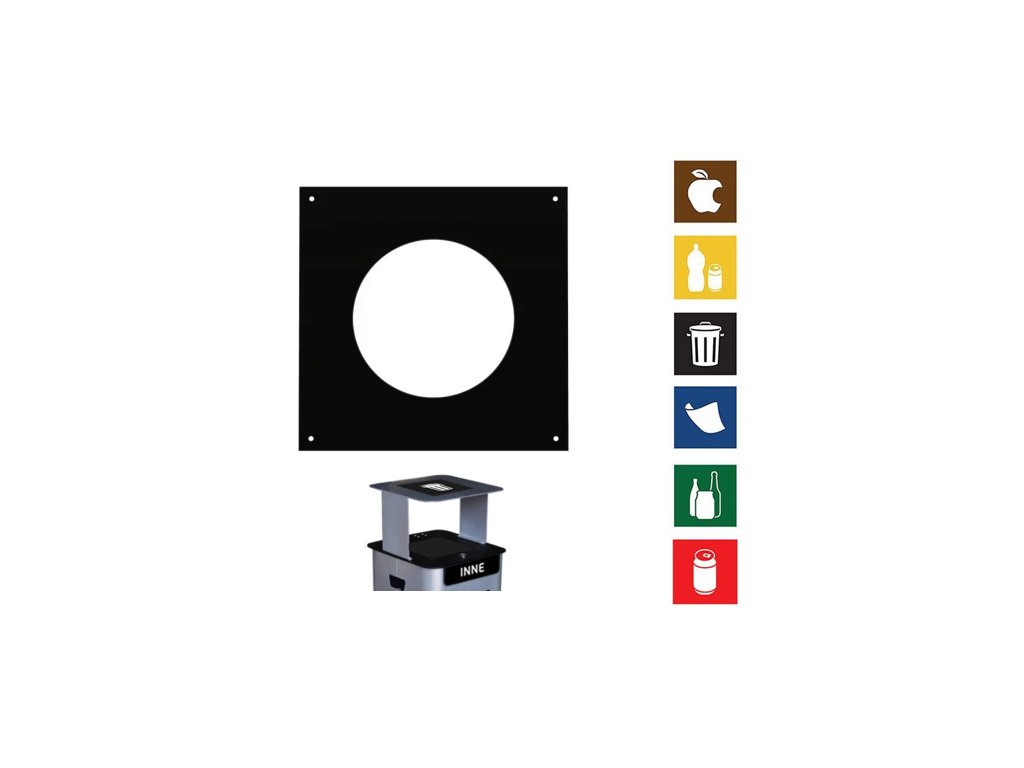Čtvercový vymezovač vhozu pro odpadkový koš Modular slouží k přesnému směrování odpadu a vizuálnímu rozlišení dle typu tříděného materiálu. Zásuvný otvor umožňuje snadné vložení vymezovače do víka. Barevné varianty odpovídají typům odpadu – např. černá pro směsný odpad.