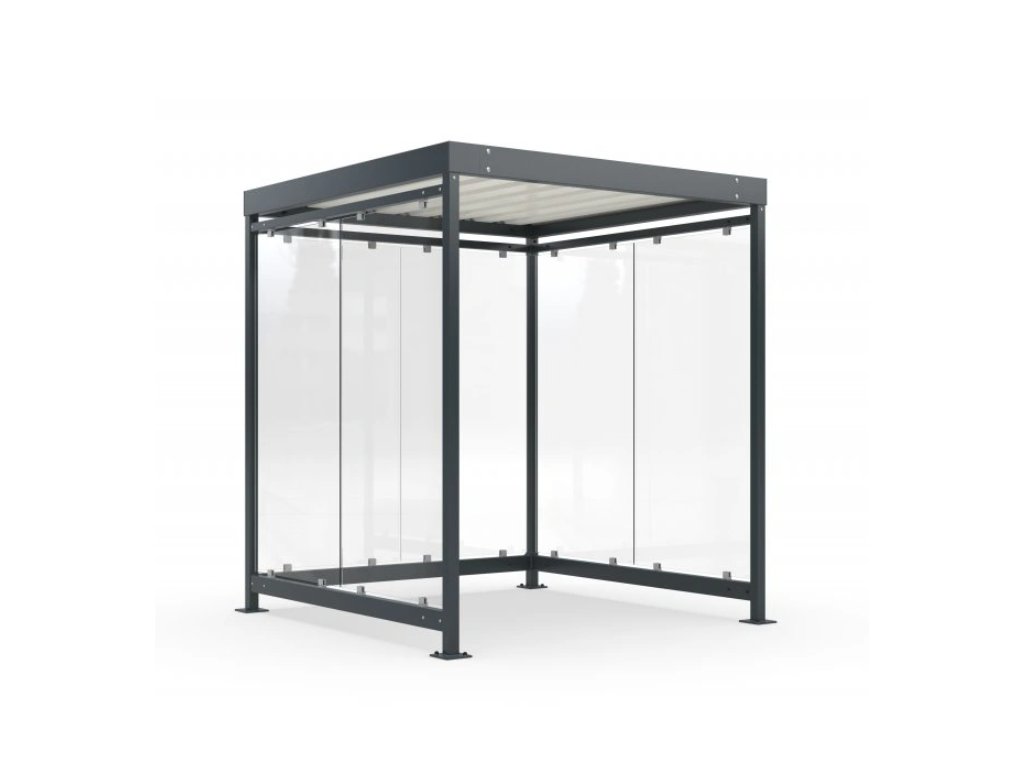Flexibilní a modulární přístřešek vhodný pro zastávky veřejné dopravy i jiná veřejná prostranství. Konstrukce umožňuje individuální úpravy délky a šířky střechy podle požadavků. Boční a zadní stěny mohou být z bezpečnostního tvrzeného skla nebo jiných odolných materiálů. Přístřešek je dodáván jako stavebnice s montážním návodem a nabízí možnost barevného lakování v odstínech RAL.
