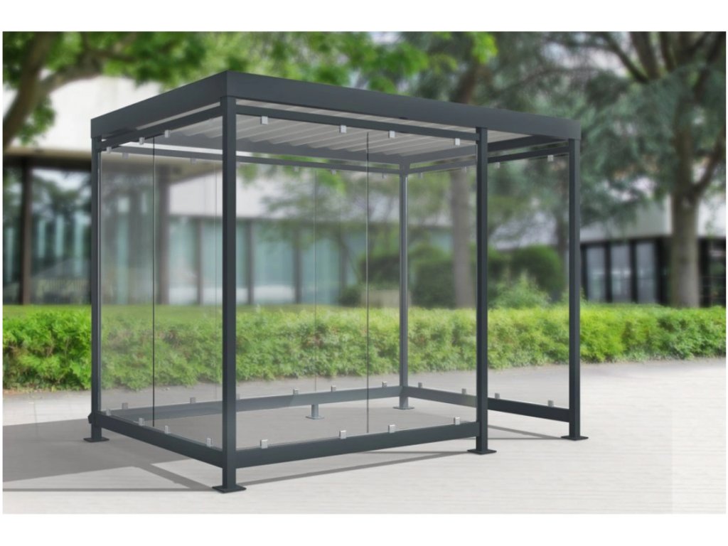 Flexibilní a modulární přístřešek vhodný pro zastávky a veřejná prostranství. Umožňuje individuální přizpůsobení délky a šířky střechy podle požadavků. Zadní a boční stěny lze dodat z bezpečnostního tvrzeného skla nebo jiných materiálů. Konstrukce je žárově pozinkovaná s možností lakování v odstínech RAL, čímž je zaručena vysoká odolnost proti povětrnostním vlivům. Přístřešek se dodává jako stavebnice včetně montážního návodu.