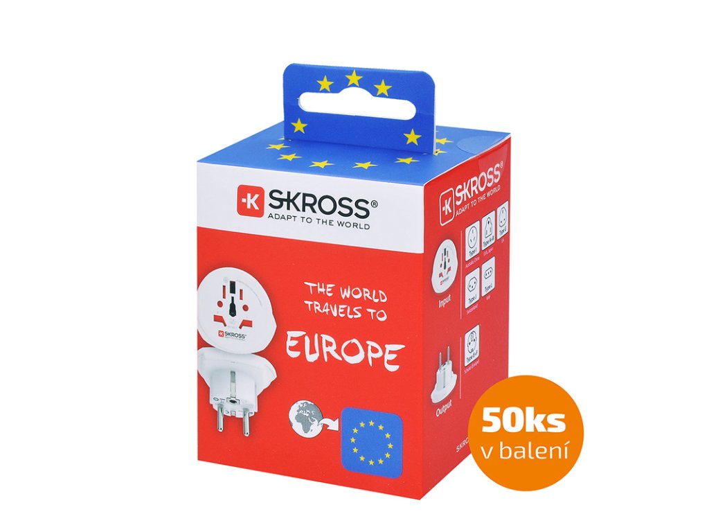 SKROSS cestovní adaptér Europe pro cizince v ČR, 50-pack, typ E/F