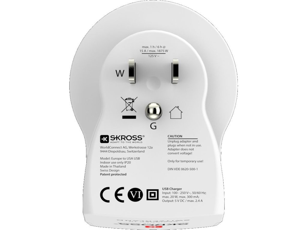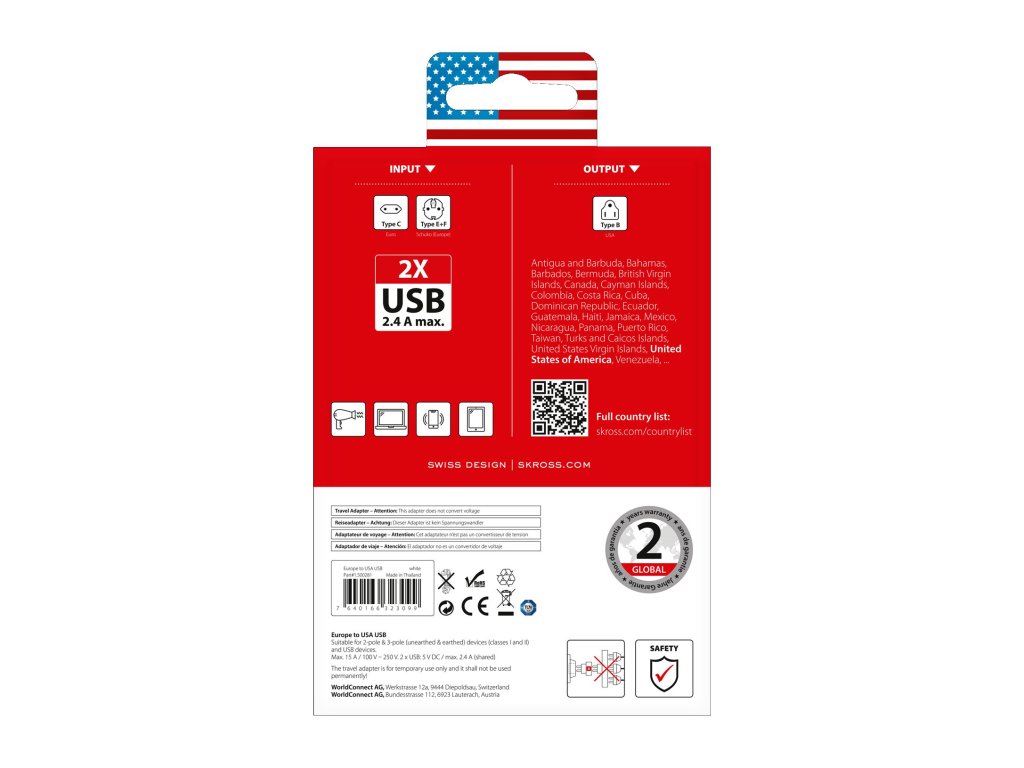 SKROSS cestovní adaptér USA USB pro použití ve Spojených státech, typ B