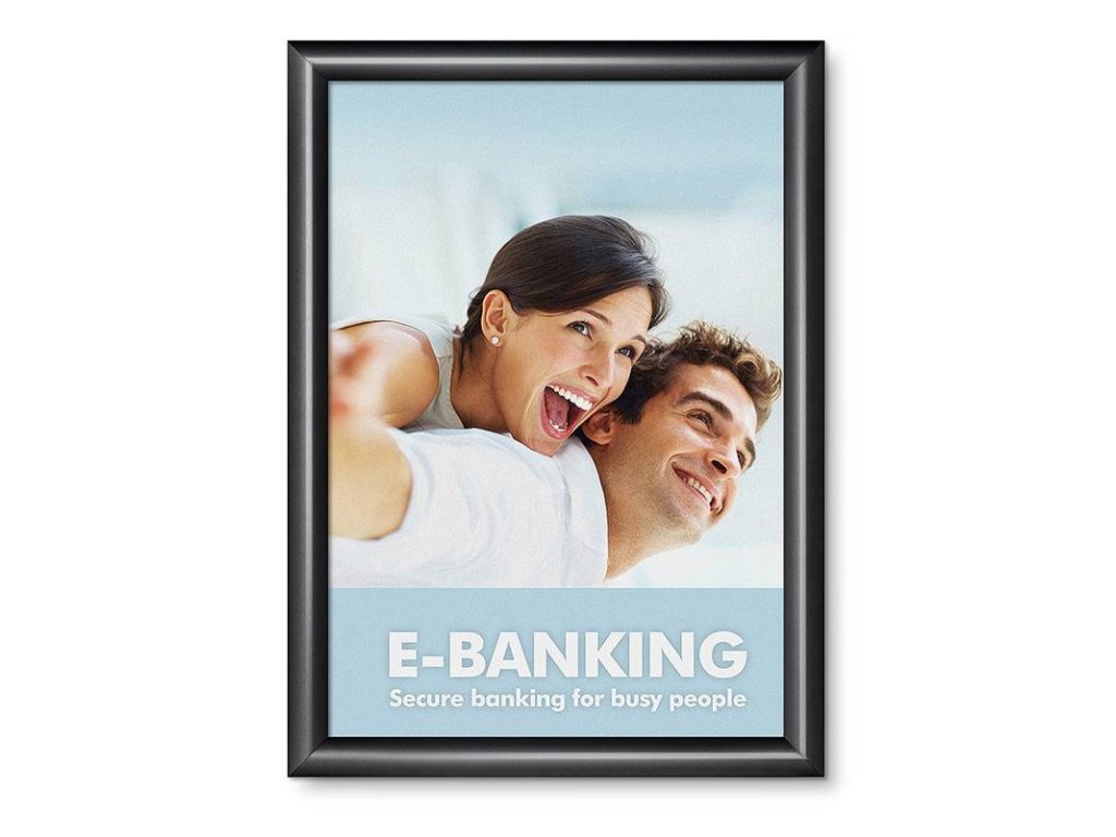 Klaprám formátu A3 s černým profilem a šířkou 25 mm je ideálním řešením pro prezentaci vašich plakátů a informačních materiálů ve vnitřních prostorech (použití venku je možné za určitých podmínek - viz sekce často kladené dotazy). Rohy jsou ostré, zadní stěna plastová a dodává se včetně antireflexní fólie s UV filtrem, která chrání plakát před UV zářením a poškrábáním.