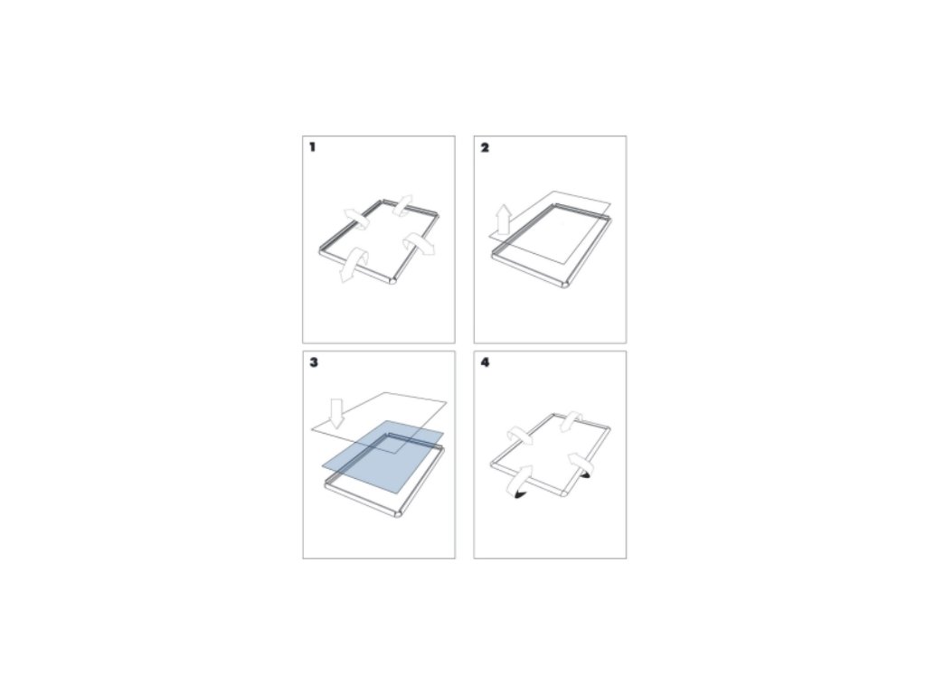 Jednoduše odklopte přední profily směrem k sobě, vyměňte plakát, a profily opět zaklapněte.