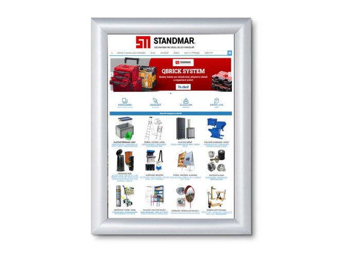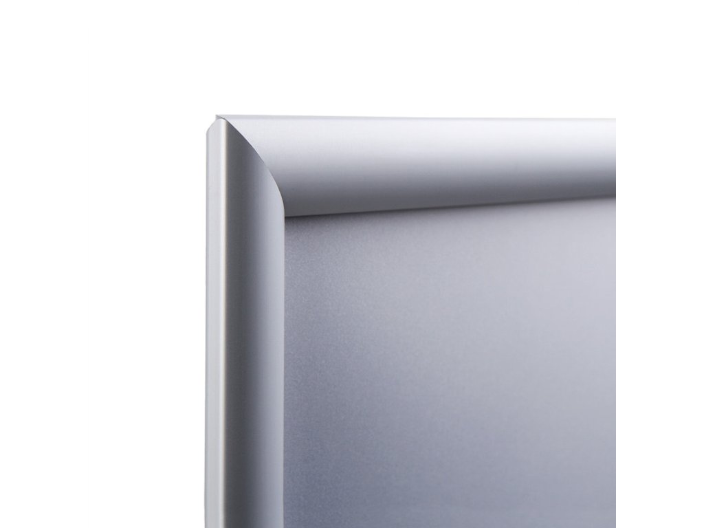 Klaprám formátu A4 se stříbrným profilem a šířkou 25 mm je ideálním řešením pro prezentaci vašich plakátů a informačních materiálů ve vnitřních prostorech (použití venku je možné za určitých podmínek - viz sekce často kladené dotazy). Rohy jsou ostré, zadní stěna plastová a dodává se včetně antireflexní fólie s UV filtrem, která chrání plakát před UV zářením a poškrábáním.