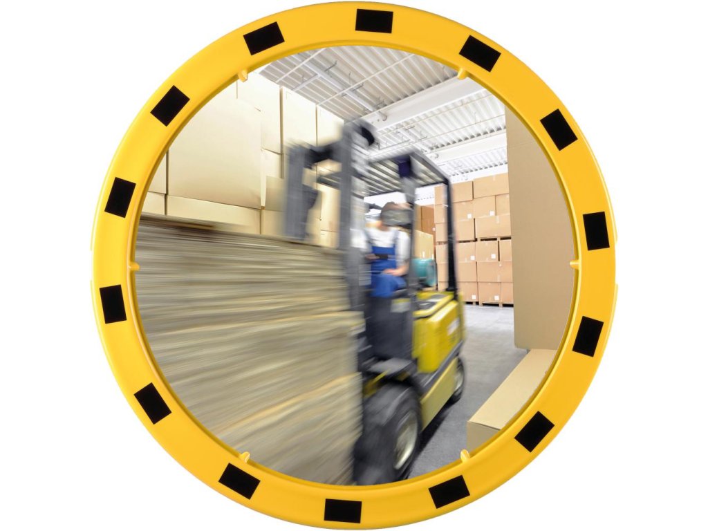 Bezpečnostní průmyslové zrcadlo EUvex zajišťuje lepší kontrolu prostoru ve výrobních a skladovacích provozech. Je vybaveno černo-žlutým výstražným rámem, který zvyšuje jeho viditelnost a přispívá k prevenci nebezpečných situací.