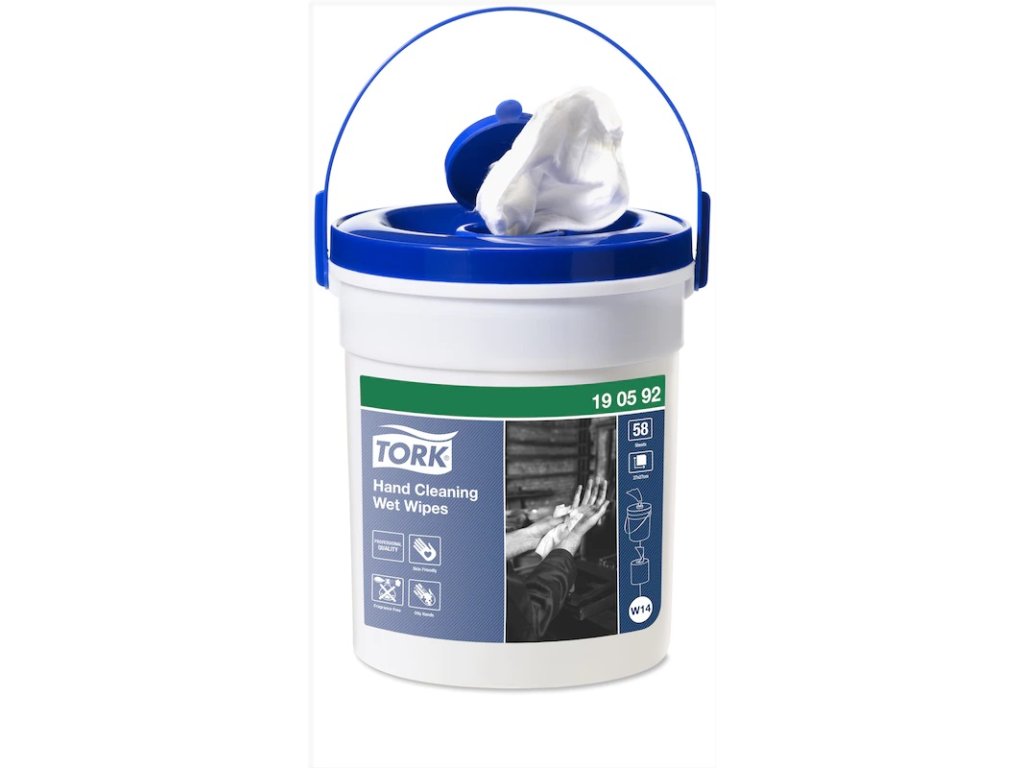 vlhčená utěrka Tork z netkané textilie napuštěná emulzí je účinným řešením pro čištění rukou, když není po ruce voda, 58 útržků, 27x27cm, 65g/m2 Vlhčené utěrky TORK Premium - výhodná kombinace efektivního čištění a péče o pokožku Vašich rukou.Využití pro mechanické dílny, automobilový průmysl, potravinářství, zdravotnictví atd. S vlhčenými utěrkami Tork Premium mohou být Vaše ruce čistké kdykoliv a kdekoliv. Tyto jednorázové utěrky jsou velice účinné pro odstranění špíny a mastnoty, zároveň jsou však velice šetrné k Vašim rukám. Můžete je používat několikrát denně bez rizika vysušení nebo podráždění pokožky. Způsob balení vlhčených utěrek (v přenosném kyblíku) je vhodný pro všechny, kdo ocení čisté ruce vždy, když je třeba. Ideální do náročného průmyslového prostředí, na cesty a do terénu. Rozpouští a absorbuje silnou špínu, oleje, mastnotu a barvy.Tork vlhčené utěrky na čištění rukou jsou pohodlným a účinným řešením pro čištění rukou, když není po ruce voda.