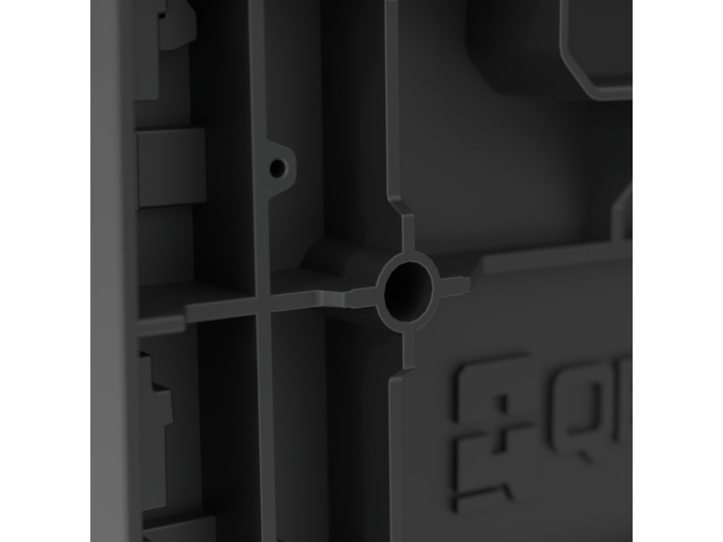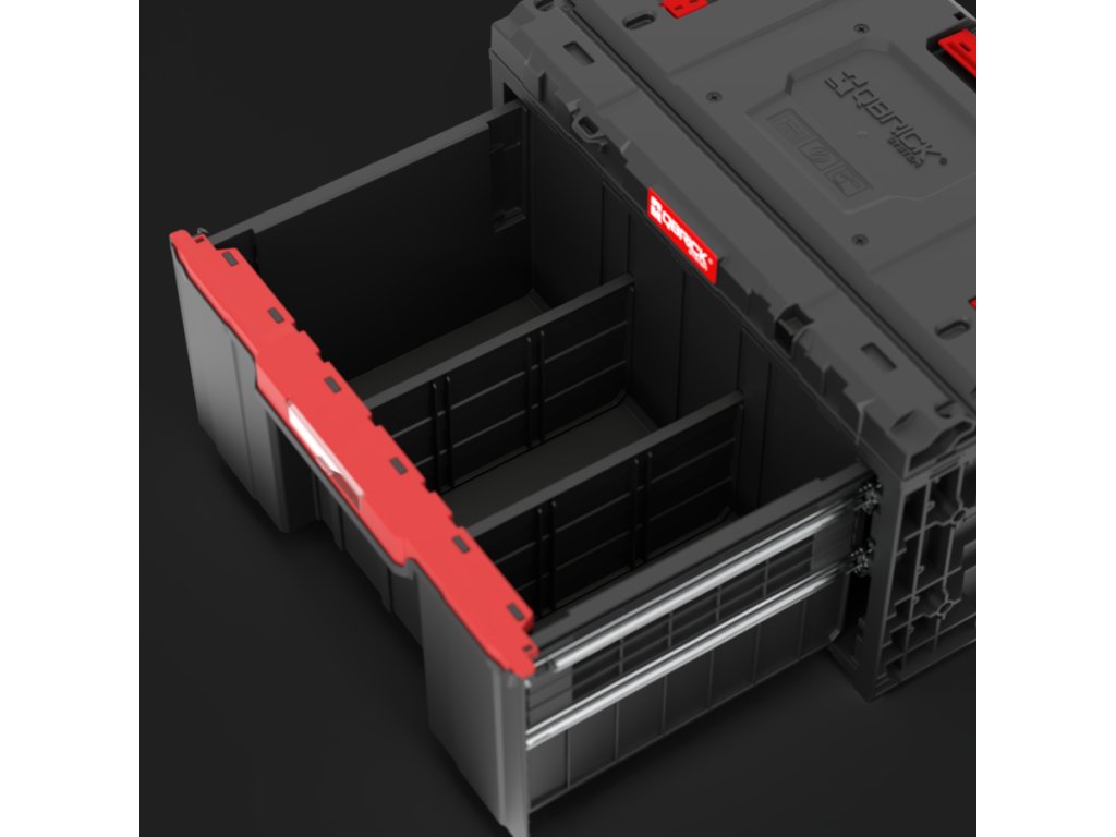 QBRICK SYSTEM ONE DRAWER 1 TOOLBOX 2.0 BASIC je největším šuplíkovým organizérem z řady Qbrick System. Lze kombinovat mezi sebou, ale také se všemi moduly z řady ONE a také z řady PRO. Drawer 1 Toolbox je vybaven automatickým systémem blokování každého šuplíku (ochrana proti samovolnému otevírání šuplíků), kovovými vodítky pro otevírání šuplíků a vynimatelnými přihrádkami prostoru v šuplíku. Dále nabízí možnost zavěšní boxu na stěně pomocí konektorů. Součásti produktu je robustní kovový plát služící uzamčení šuplíků (kladky pro uzamčení nejsou součástí dodávky). Popis obsahu zásuvek poskytuje místo pro štítek zabezpečený polykarbonátovou krytkou na čele zásuvky.