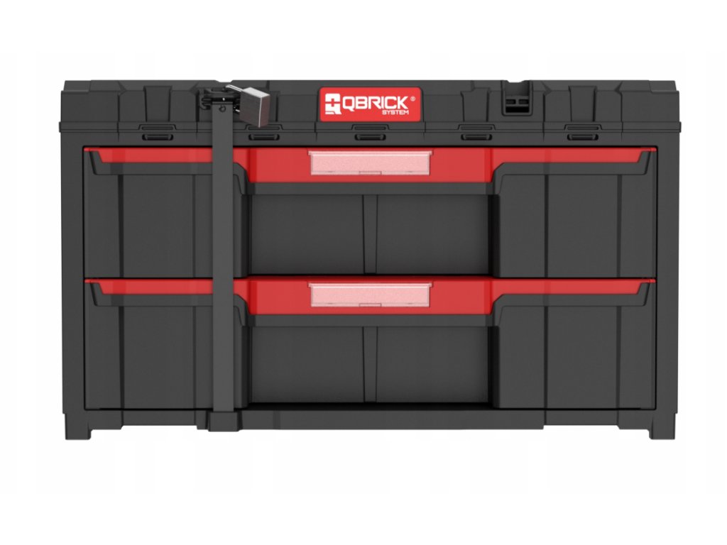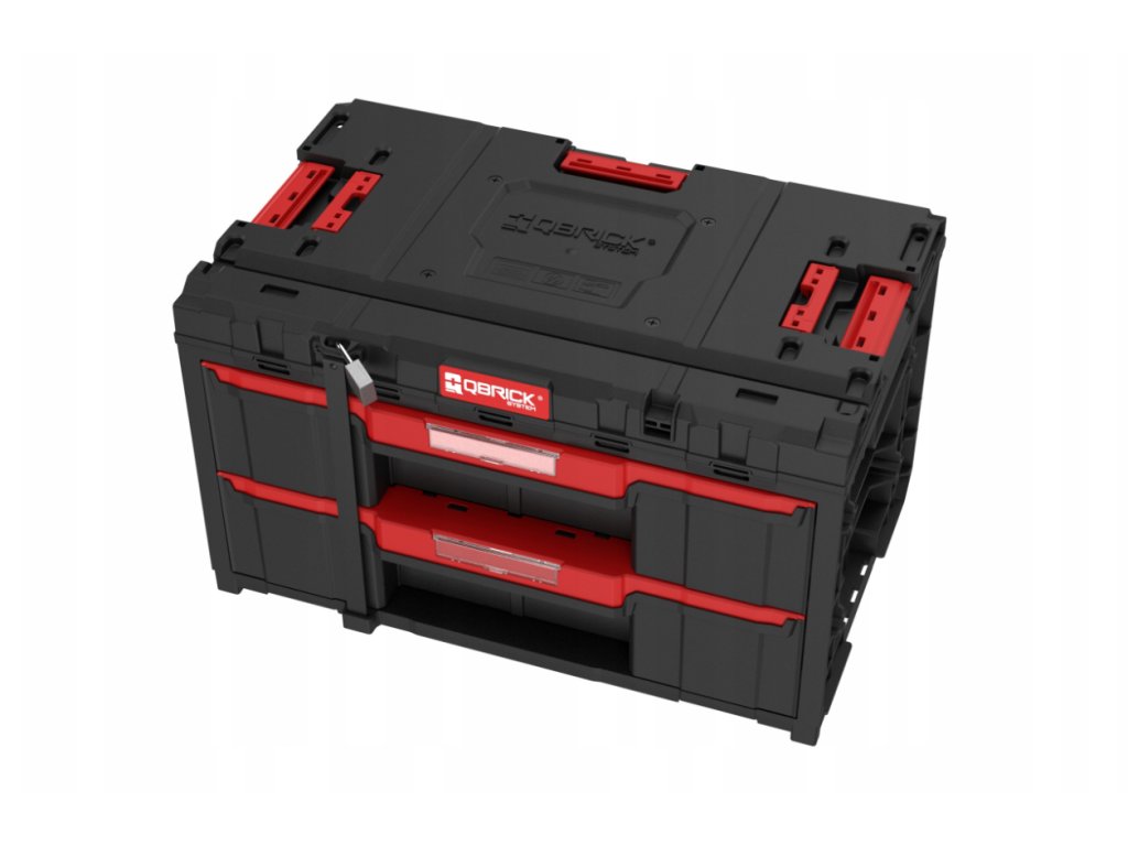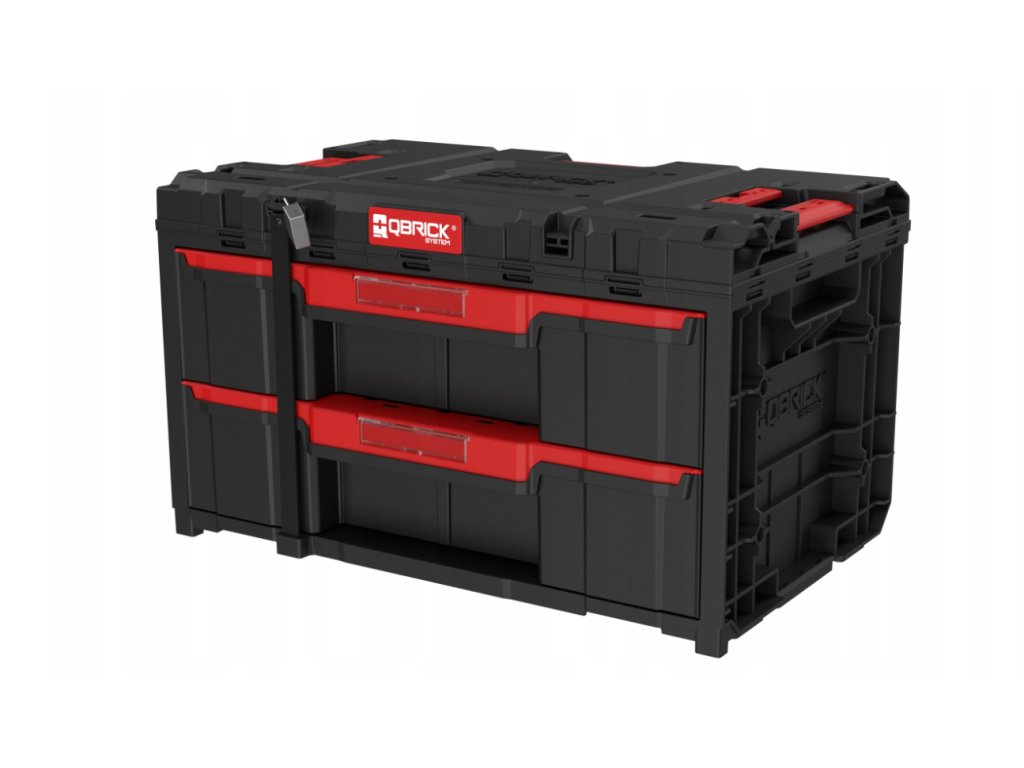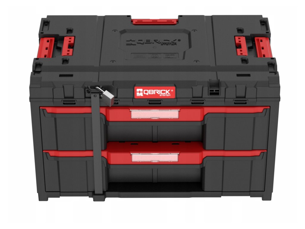 QBRICK SYSTEM ONE DRAWER 2 TOOLBOX 2.0 BASIC je největším šuplíkovým organizérem z řady Qbrick System. Lze kombinovat mezi sebou, ale také se všemi moduly z řady ONE a také z řady PRO. Drawer 2 Toolbox je vybaven automatickým systémem blokování každého šuplíku (ochrana proti samovolnému otevírání šuplíků), kovovými vodítky pro otevírání šuplíků a vynimatelnými přihrádkami prostoru v šuplíku. Dále nabízí možnost zavěšní boxu na stěně pomocí konektorů. Součásti produktu je robustní kovový plát služící uzamčení šuplíků (kladky pro uzamčení nejsou součástí dodávky). Popis obsahu zásuvek poskytuje místo pro štítek zabezpečený polykarbonátovou krytkou na čele zásuvky.