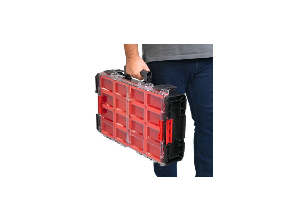 QBRICK SYSTEM ONE ORGANIZER XL 2.0 Long Bin je největším organizérem z řady Qbrick System ONE. Lze kombinovat mezi sebou, ale také se všemi moduly z řady ONE. Organizér XL je spojnicí mezi Organizérem L a M a ostatními nástroji z řady Qbrick System ONE.Organizér XL. Je vybaven 4 multifunkčními kontejnery se 3 černými děliči - možnost nastavení délky kontejneru až do 50 cm. Vyznačuje se odolností vůči nárazům. Patentovaný systém Easy Access, díky speciálním konektorům, umožnuje lehký přístup k jednotlivým modulům, bez nutnosti jejich odmontování.