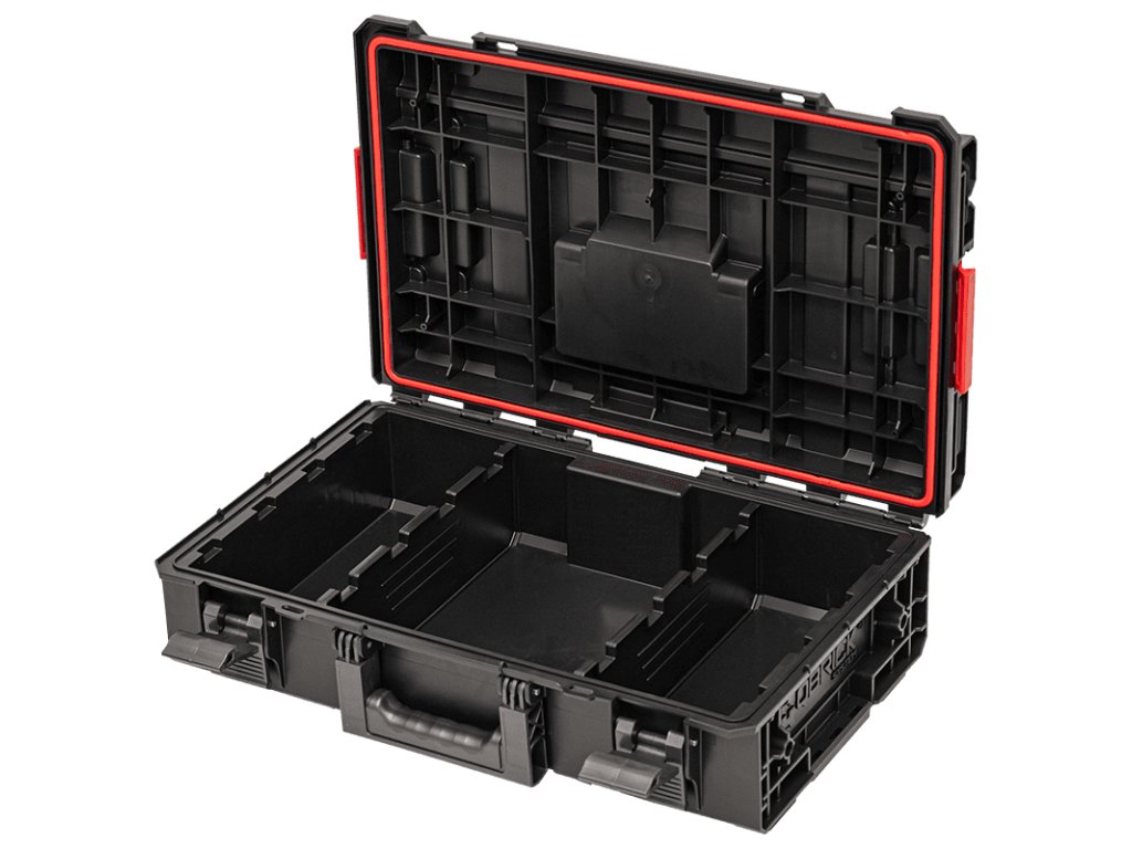 QBRICK SYSTEM ONE 200 2.0 VARIO je univerzální, modulární toolbox, který kombinuje vlastnosti kontejneru na středně velké nástroje s funkcí organizéru. Díky nastavitelným přepážkám si každý uživatel může vytvořit optimální kombinaci pro své potřeby. Každý box je vybaven pružným těsněním, které poskytuje plnou ochranu proti vnikání prachu a vody.