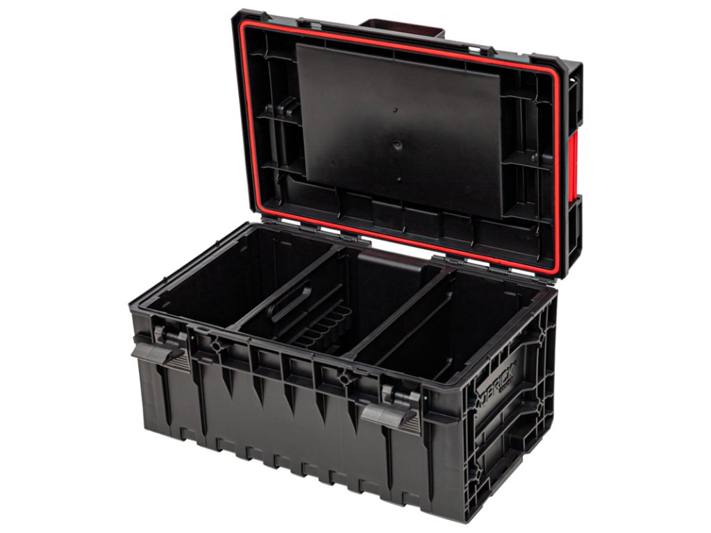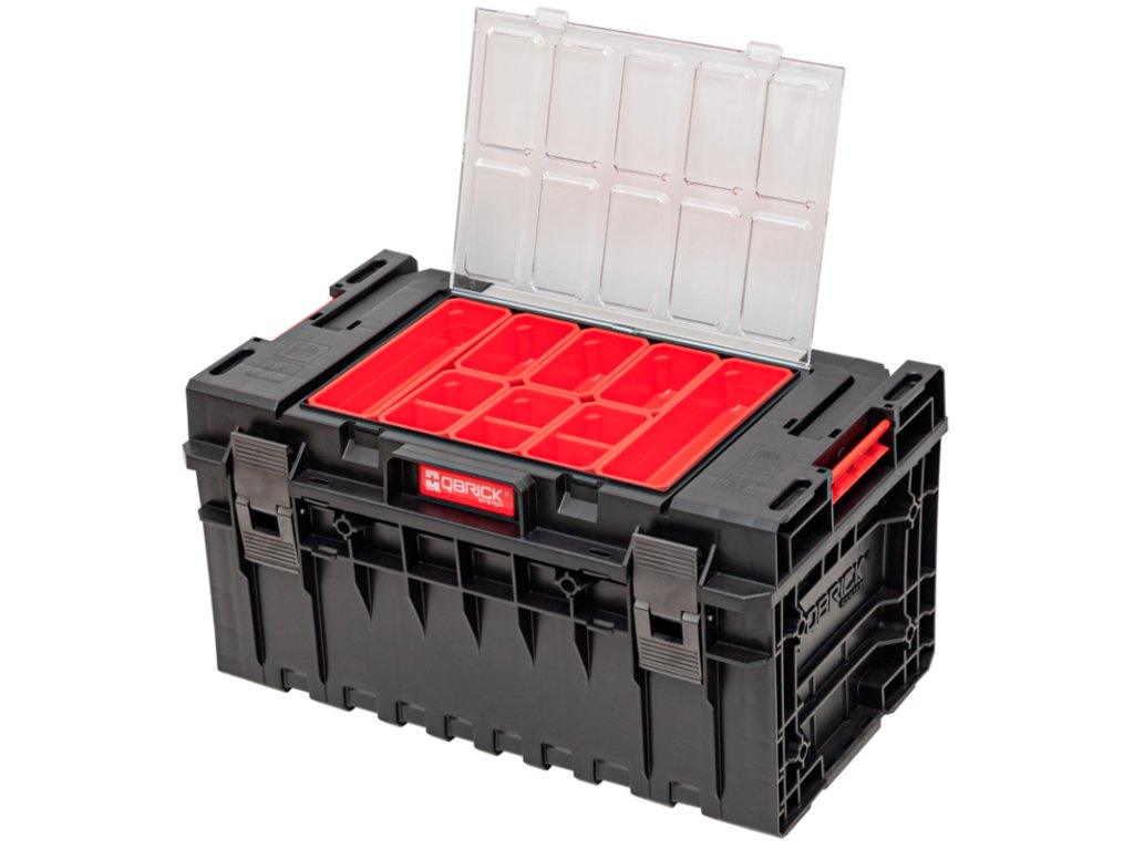QBRICK SYSTEM ONE 350 2.0 EXPERT je velký kufr na nářadí o objemu 38 litrů. Díky tomu se do něj vejde velké elektrické nářadí a ruční nářadí. Každý box je vybaven pružným těsněním, které poskytuje plnou ochranu proti vnikání prachu a vody (IP66). Standardně je vybavena dvěma nastavitelnými přepážkami zajišťujícími perfektní organizaci prostoru uvnitř boxu.
