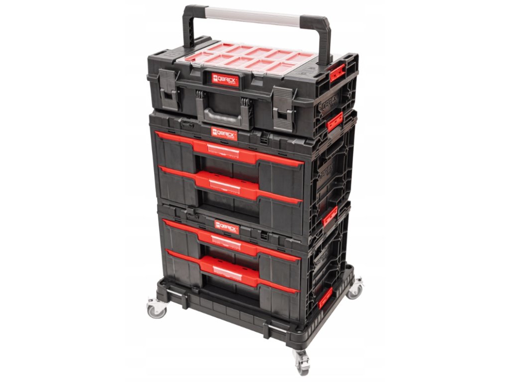 - kompatibilní – systém Qbrick System ONE umožňuje kombinování kufrů na nářadí, vozíků a úložných systémů (hlavně šuplíkové boxy - DRAWERY)