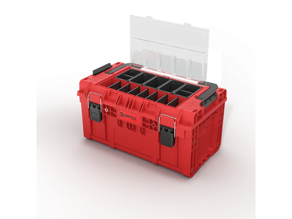 Kufr na nářadí QBRICK SYSTEM PRIME Toolbox 250 EXPERT Red Ultra HD je velký box na nářadí o objemu 26 litrů. Voděodolná a prachotěsná konstrukce (IP66), polyamidové spony s kovovou objímkou a zesílená konstrukce zaručují ochranu nářadí v něm umístěného.
