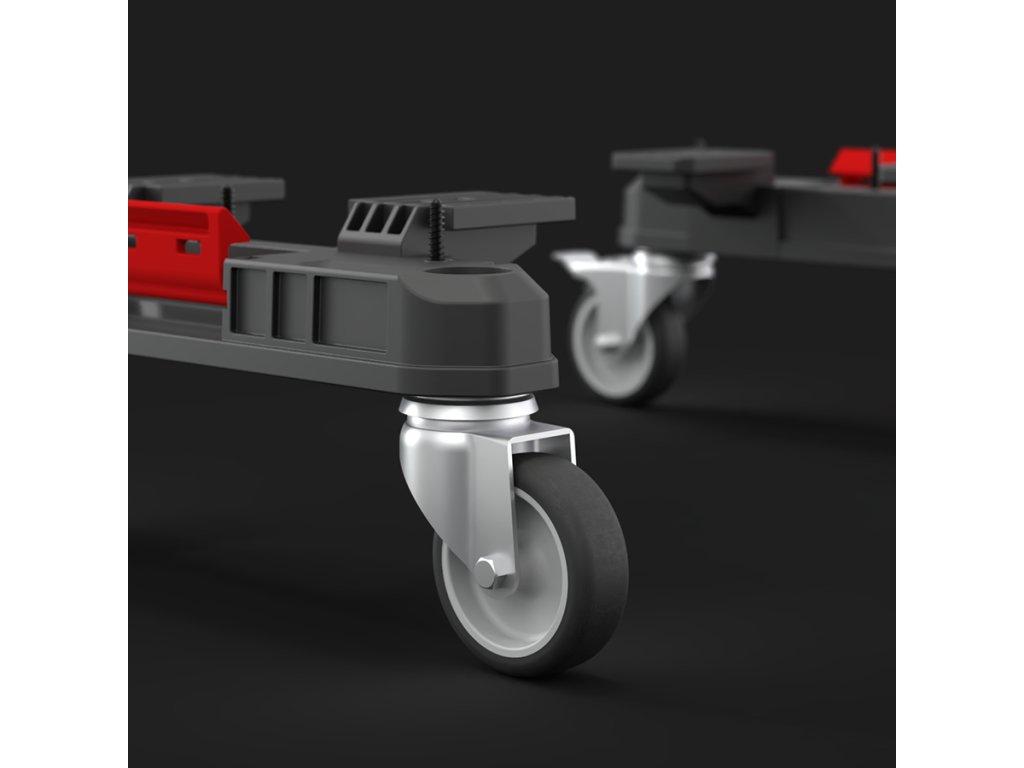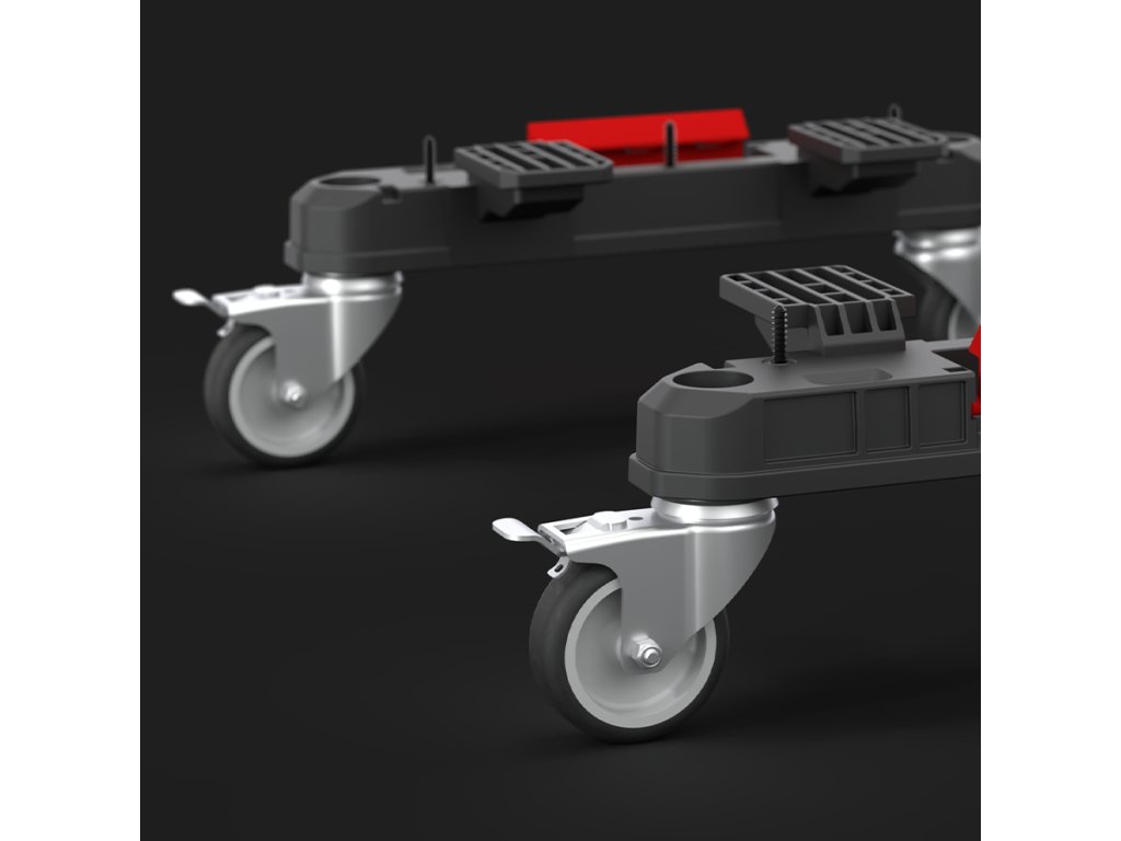 Každý adaptér je vybaven dvěma odolnými otočnými kolečky. Dva z nich mají brzdy, které umožňují stabilní umístění krabice na požadovaném místě, zatímco další dva zajišťují plynulé a snadné manévrování.