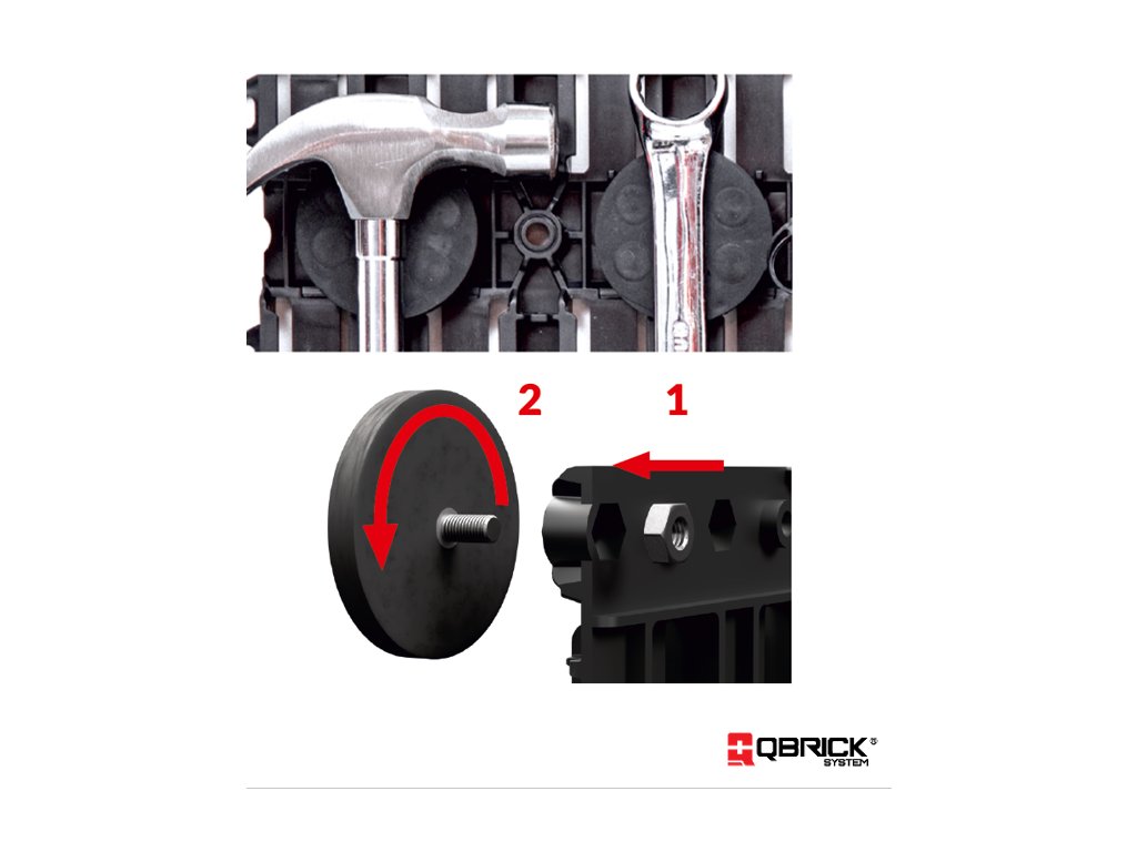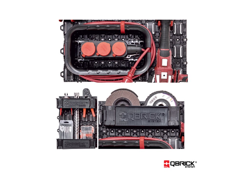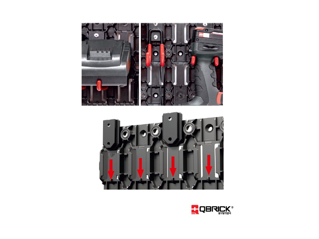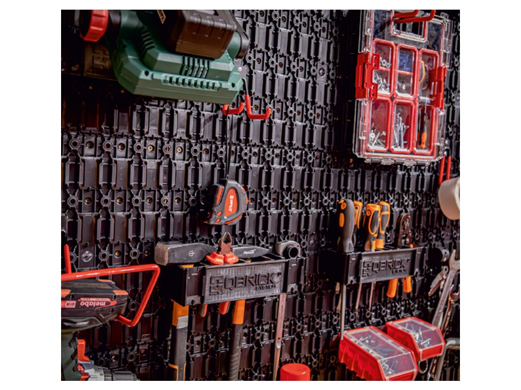 Qbrick System Custom Pegboard - je černý plastový panel uzpůsobený pro zavěšení komponentů řady Qbrick System. Prvek je koncipován pro připevnění na zeď. Díky široké škále různých komponentů můžete uložit velké množství nářadí a jiného vybavení.