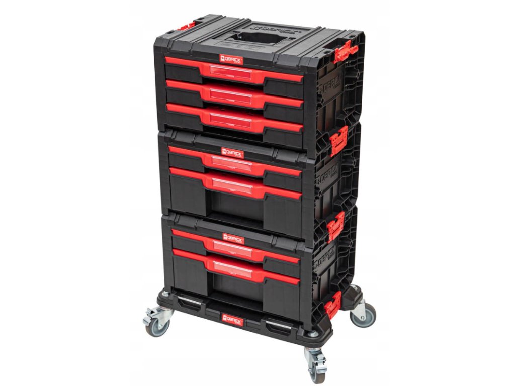 4dílná sada (přepravní plošina QS PRO + 3 moduly QS PRO Drawer Toolbox) obsahuje celkem 7 zásuvek (5 zásuvek nad 5 cm hloubky + 2 zásuvky nad 11 cm hloubky).