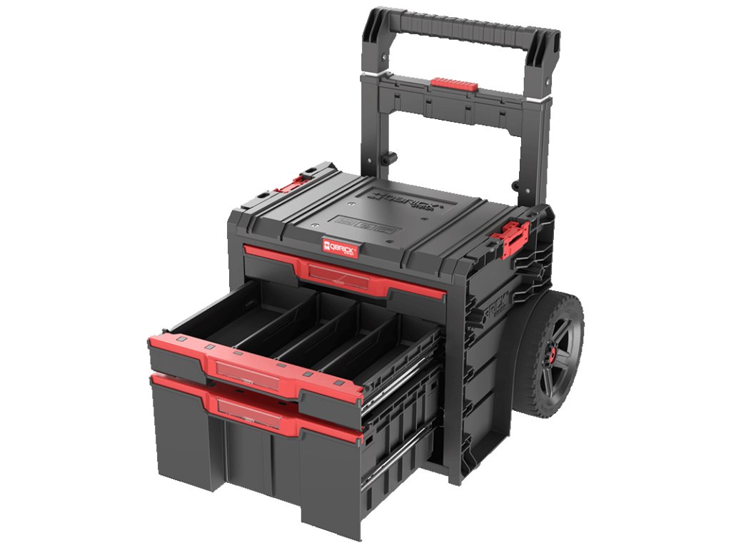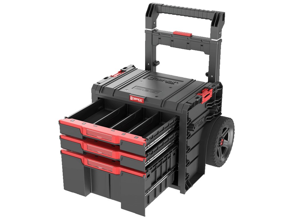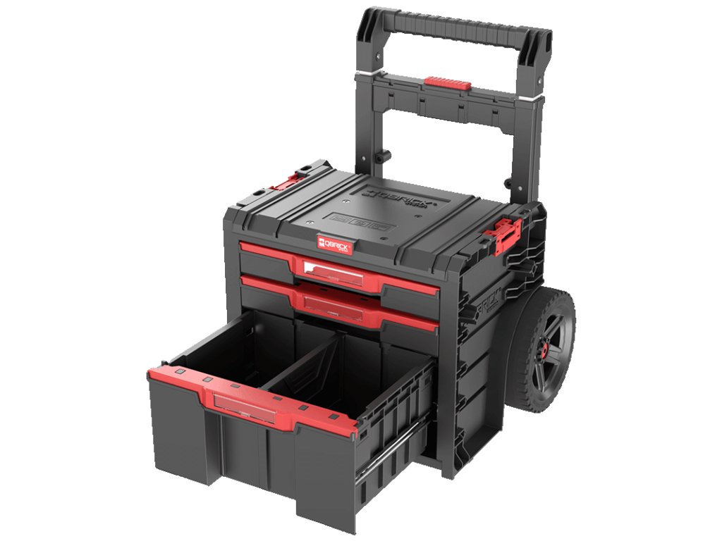 Qbrick System PRO Cart 2.0 Plus Drawer 3 Basic je mobilní box na kolečkách. Vybaven dvojitou, odnímatelnou teleskopickou rukojetí a pohodlnou platformou pro nohy umožňují pevné uchopení a snadné manévrování na relativně malé ploše. Velká 9palcová kola o šířce téměř 6 cm jsou pokryta silnou vrstvou gumy, která zajišťuje bezproblémovou trakci i v těch nejtěžších podmínkách.
