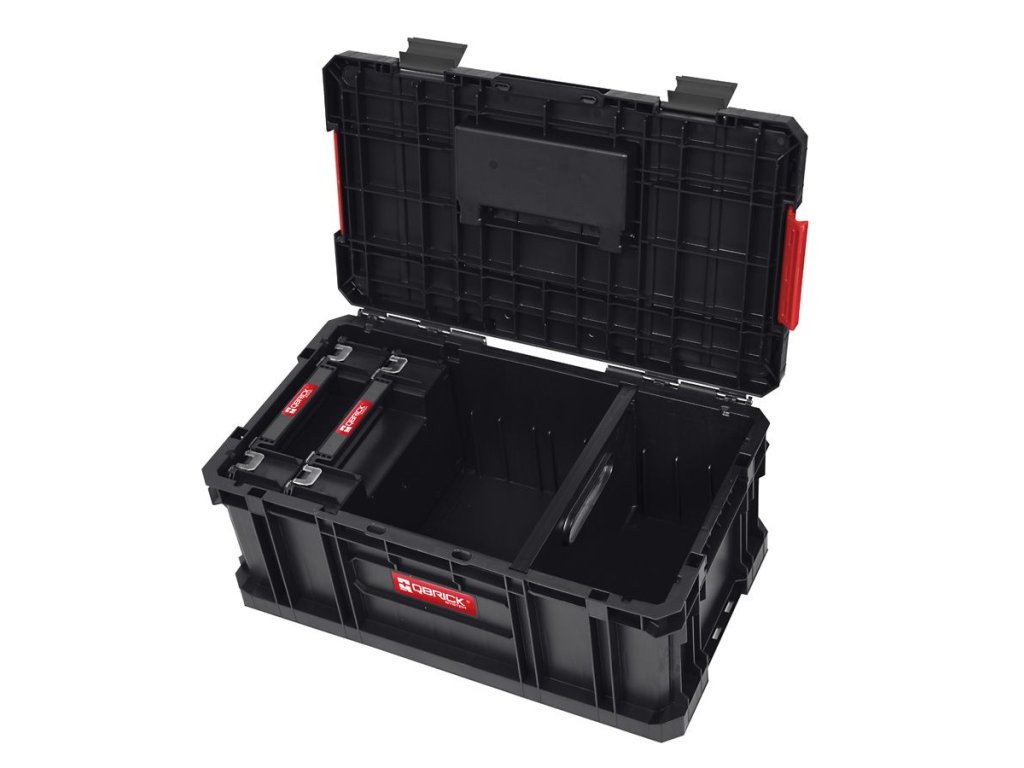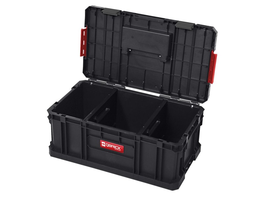 QBRICK SYSTEM TWO TOOLBOX PLUS je modulární, odolný box na nářadí s polyamidovými západkami a pevnou rukojetí o objemu 26 litrů. Velká kapacita a dva nastavitelné děliče poskytují pohodlné uložení různých nástrojů.