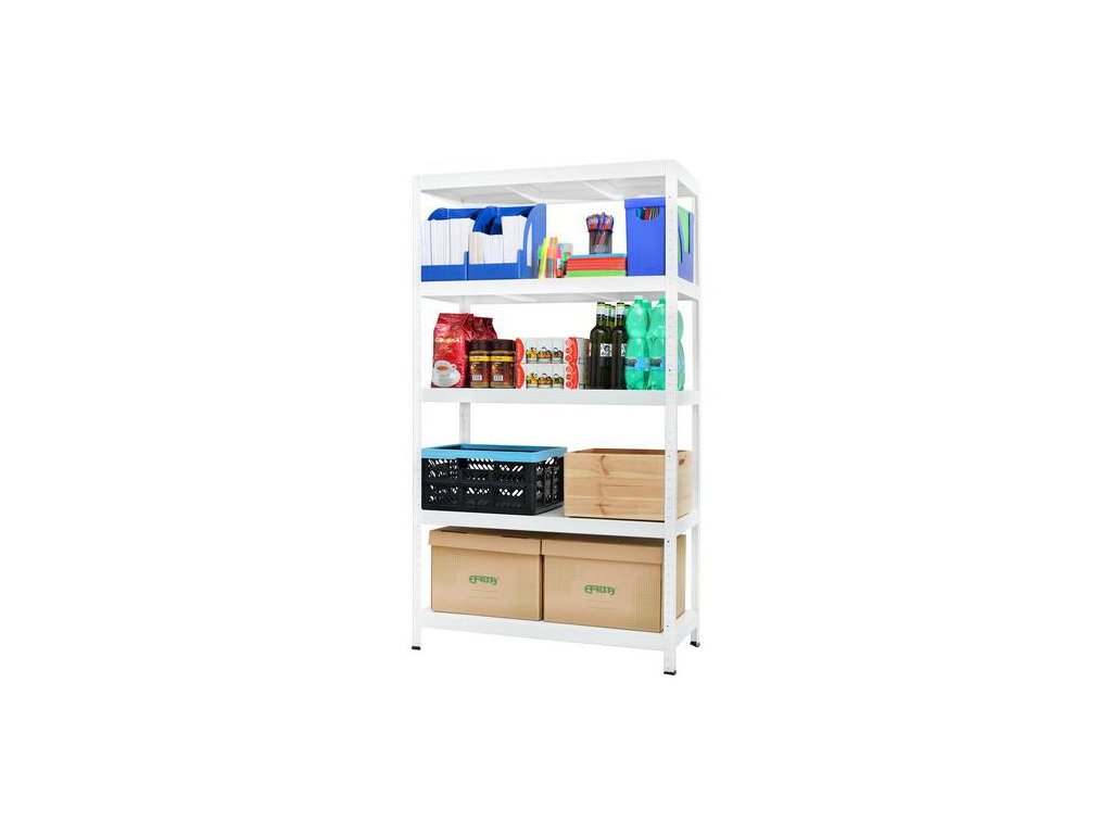 Kovový bezšroubový regál DRUMY, 180 x 100 x 40 cm, 130 kg/police, 5 kovových polic, bílý
