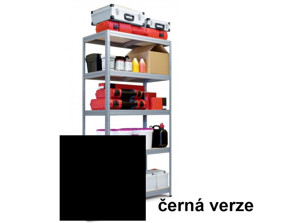Kovový bezšroubový regál FUTUR, 180 x 75 x 35 cm, 350 kg/pol., 5 MDF polic, černá