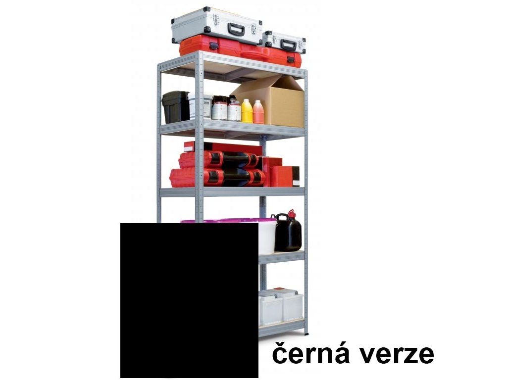 Kovový bezšroubový regál FUTUR, 180 x 90 x 45 cm, 350 kg/pol., 5 MDF polic, černá