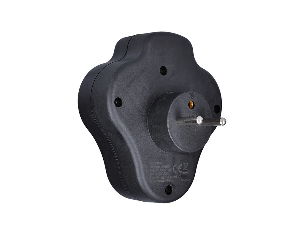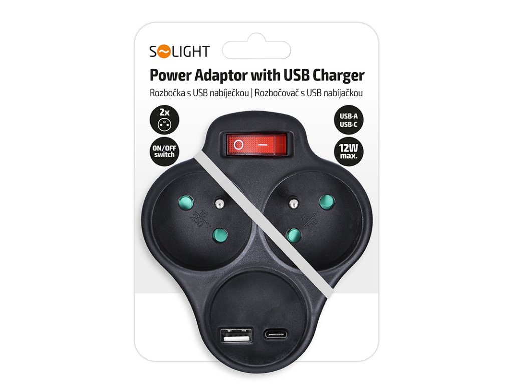 Solight rozbočka s USB A+C nabíječkou, 2 x 10A, černá, vypínač