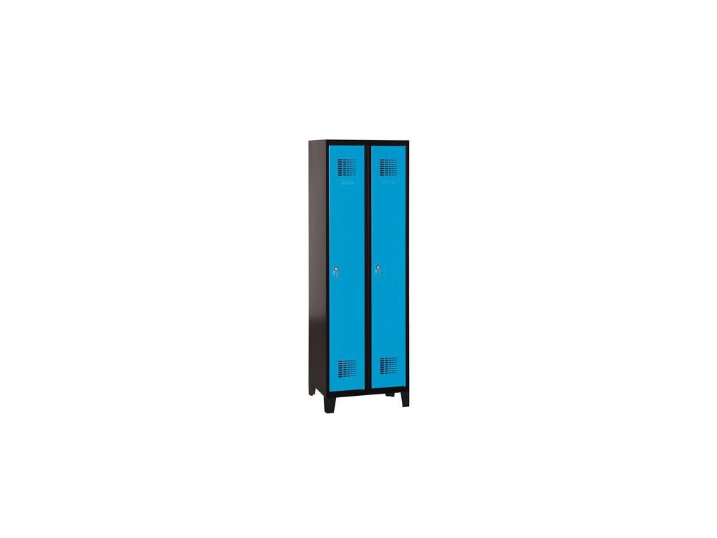 Jméno: Svařovaná šatní skříň na nohách, 2 oddíly, cylindrický zámek, černá/sv. modrá