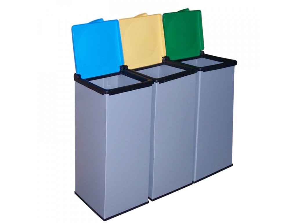 ✔ Tři barevná víka pro snadné třídění odpadu